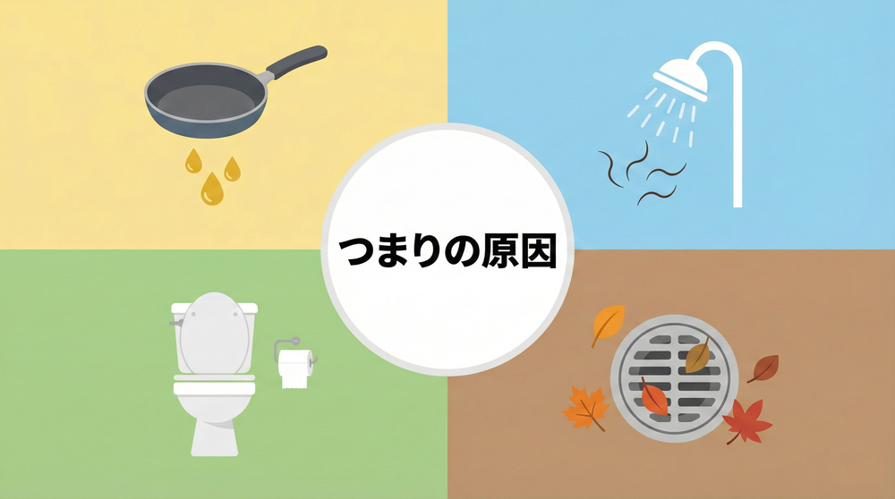 水回りのトラブルを解決するには、まず「なぜつまったのか」を知ることが解決への第一歩です。場所によって流れる汚れの種類が異なるため、つまりの原因もそれぞれ違います。原因を特定することで、最も効果的なアプローチを選ぶことができます。